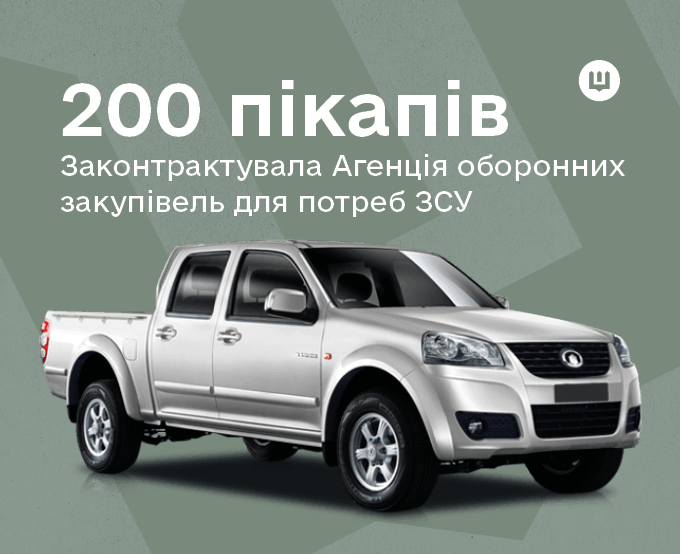 Агенція оборонних закупівель законтрактувала 200 нових пікапів для ЗСУ. За результатами торгів у Prozorro закуплені автомобілі Great Wall Wingle 5, які відповідають усім технічним вимогам, та вже постачалися нашим військовим.